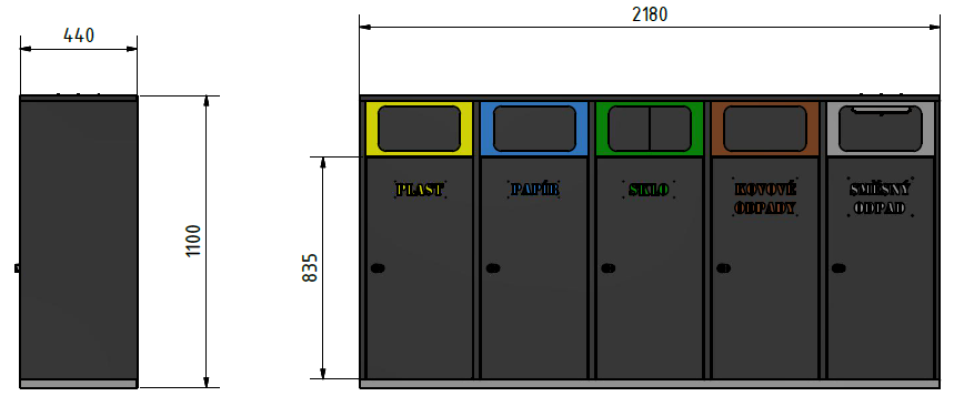 Koš má objem 5x 100L.